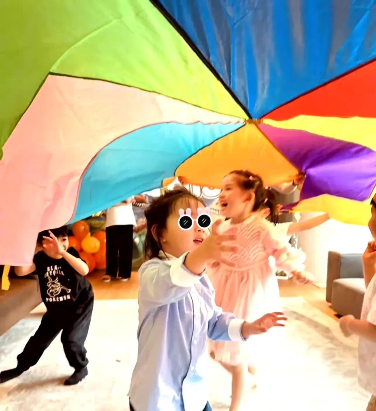 细看向佐儿子过生日时的照片,肉弟在过生日时,上身穿了一件淡蓝色的衬衫,下身穿了一条深色的短裤,坐在彩虹伞上,特别可爱。