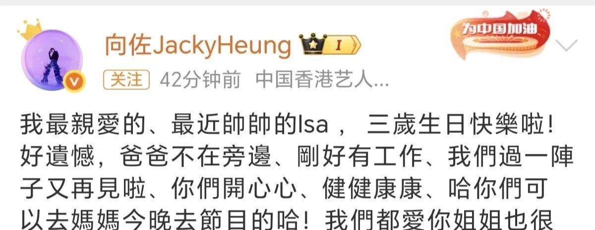 由于工作的原因,儿子这次过生日,向佐没有陪在身边,不过,他在网上表达了自己对于儿子的爱。